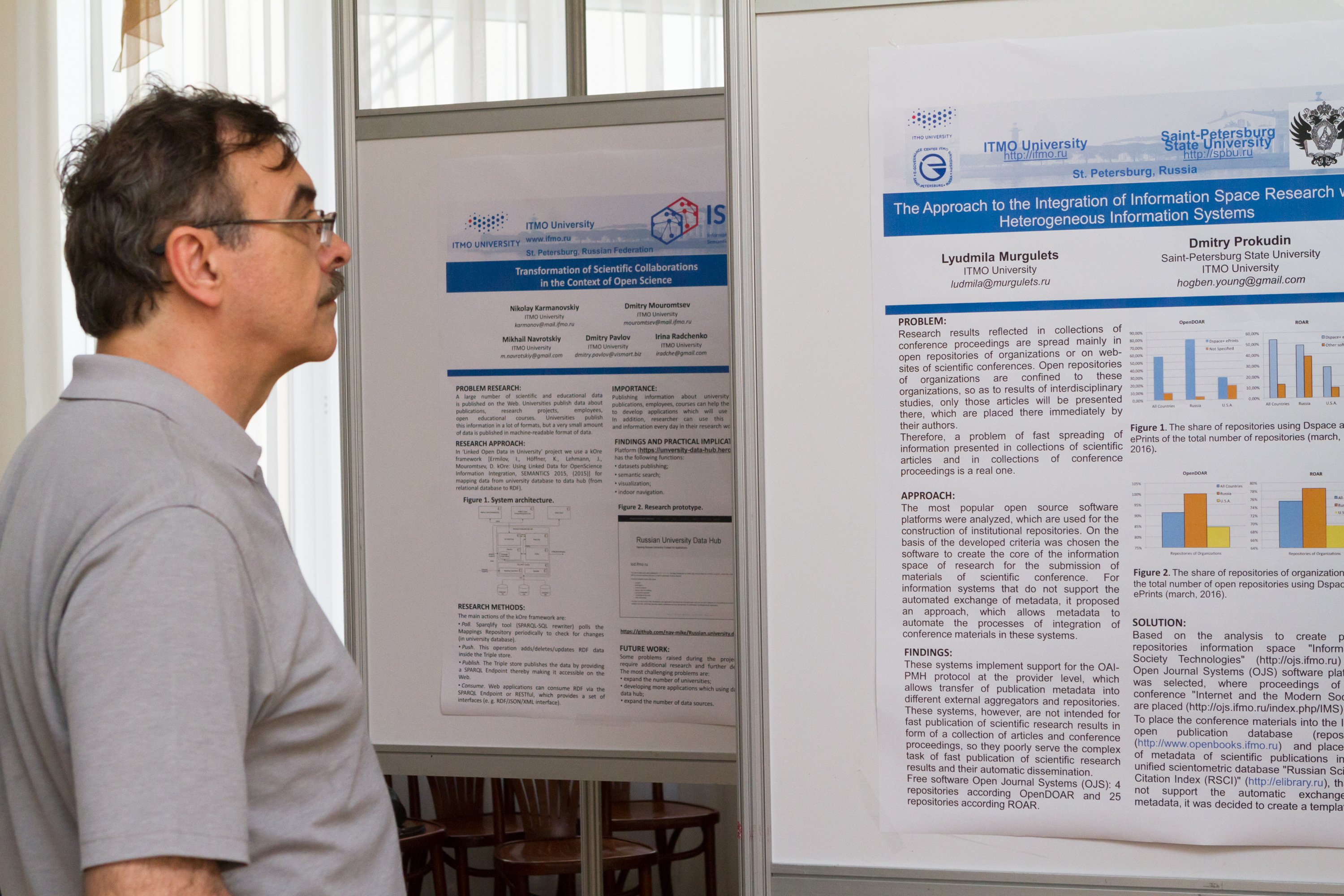 Работу международной конференции «Цифровые трансформации и глобальное общество» (Digital Transformations & Global Society - DTGS) предваряла постерная сессия, которая состоялась 22 июня в здании Университета ИТМО. С постерными докладами в ней принял участие 31 учёный. Общее число участников составило 56 человек. В непринуждённом общении авторы постерных докладов отвечали на вопросы участников и принимали участие в дискуссиях.