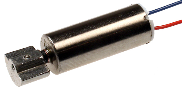 Вибрация создается за счет возникающего от вращения эксцентрика дисбаланса и передается на корпус устройства, в котором установлен компонент. Преимуществами такого вибромотора являются низкая цена, легкость управления и высокая сила вибрации. Также для его работы необходим постоянный ток, что позволяет питать моторчик от аккумулятфора без необходимости преобразования его в переменный ток. Главные недостатки такого вида вибромоторов — бесконтрольное «дребезжание» устройства и невозможность создания сложных эффектов вибрации (например, имитации прокручивания механического барабана или переключения тумблера). Также эксцентрик не может раскрутиться моментально, из-за чего для набора ощутимой силы вибрации уходит до 200 миллисекунд [7], что в некоторых случаях может оказаться слишком большим. Вследствие этого, также невозможно имитировать короткий, но сильный «толчок».