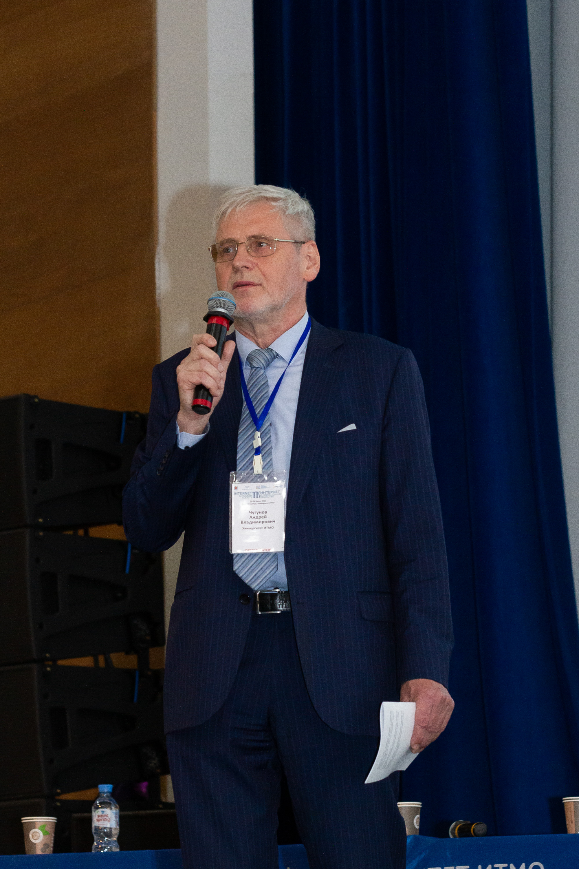 На конференции IMS-2022 новой темой стало обсуждение этико-правовых вопросов цифровой трансформации. Импульс развитию этой проблематики был придан в ноябре 2021 г. на форуме «ИТ Диалог 2021», где состоялось заседание экспертной группы «Этика цифровой трансформации», которая обсуждала проблемы, возникающие при реализации государственной политики в сфере цифровизации. В ходе работы экспертной группы обсуждался широкий круг вопросов, так как цифровизация затрагивает глубинные процессы, протекающие во всех сферах, от государственного управления до личных взаимоотношений людей. Эти вопросы находят широкий резонанс в отечественном общественно-политическом дискурсе. Как отметил в своём выступлении на открытии конференции ректор ИТМО Владимир Васильев (рис. 3), «фокус этой конференции ― этические и правовые аспекты современного цифрового общества. И мне кажется, он был выбран абсолютно правильно. В Университете ИТМО мы уделяем внимание не только программированию, но и этике, которая сейчас выходит в науке на первый план. Мы понимаем, что при развитии искусственного интеллекта нам необходимо задумываться о стандартизации и вопросах этико-правового обеспечения» [1].